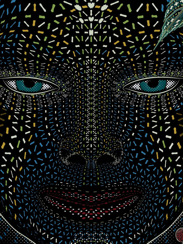 Aya - A woman holding her head with two arms, with plants growing around each arm. One plant is the capi vine, and the other is the chakruna plant, the two main ingredients in the ayahuasca brew used in traditional Amazonian shamanic practices. The capi vine contains harmine, a potent MAO inhibitor that prevents the breakdown of DMT, the primary psychoactive compound in chakruna. When brewed together, these plants produce a powerful and transformative psychedelic experience.
